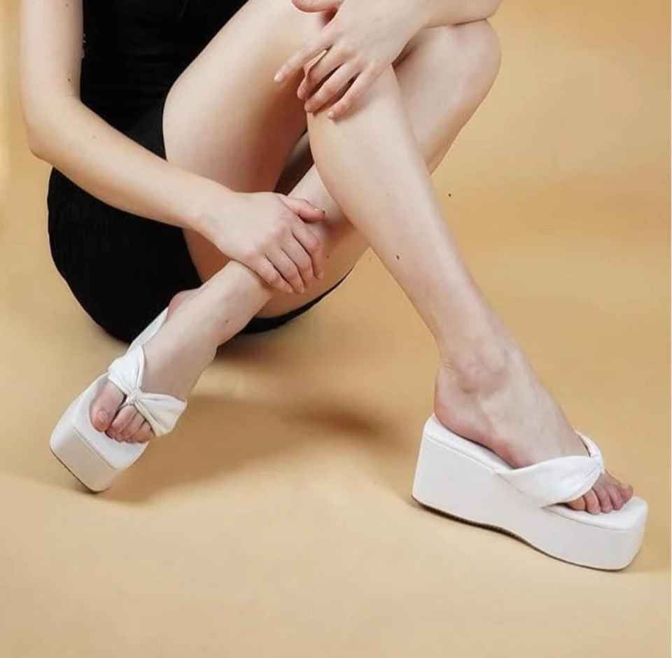 รองเท้าส้นเตารีดแบบสวมสำหรับผู้หญิง สีขาว พื้นนิ่ม บุโฟม รองรับน้ำหนักได้ดี ส้นสูง 4 นิ้ว พื้นสังเคราะห์ ใส่สบาย เหมาะสำหรับฤดูร้อน