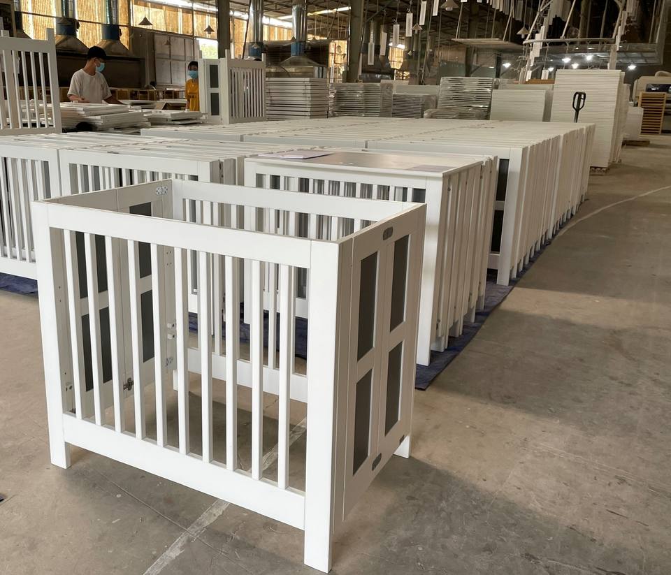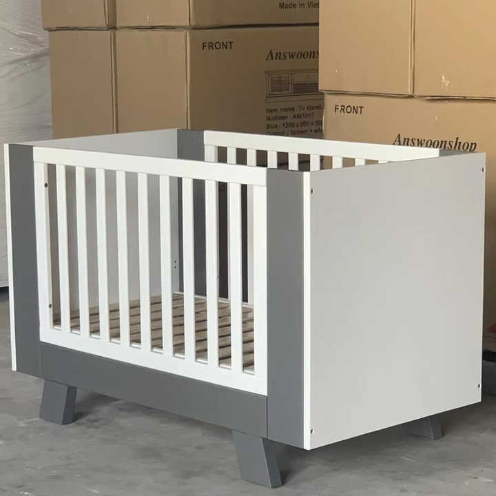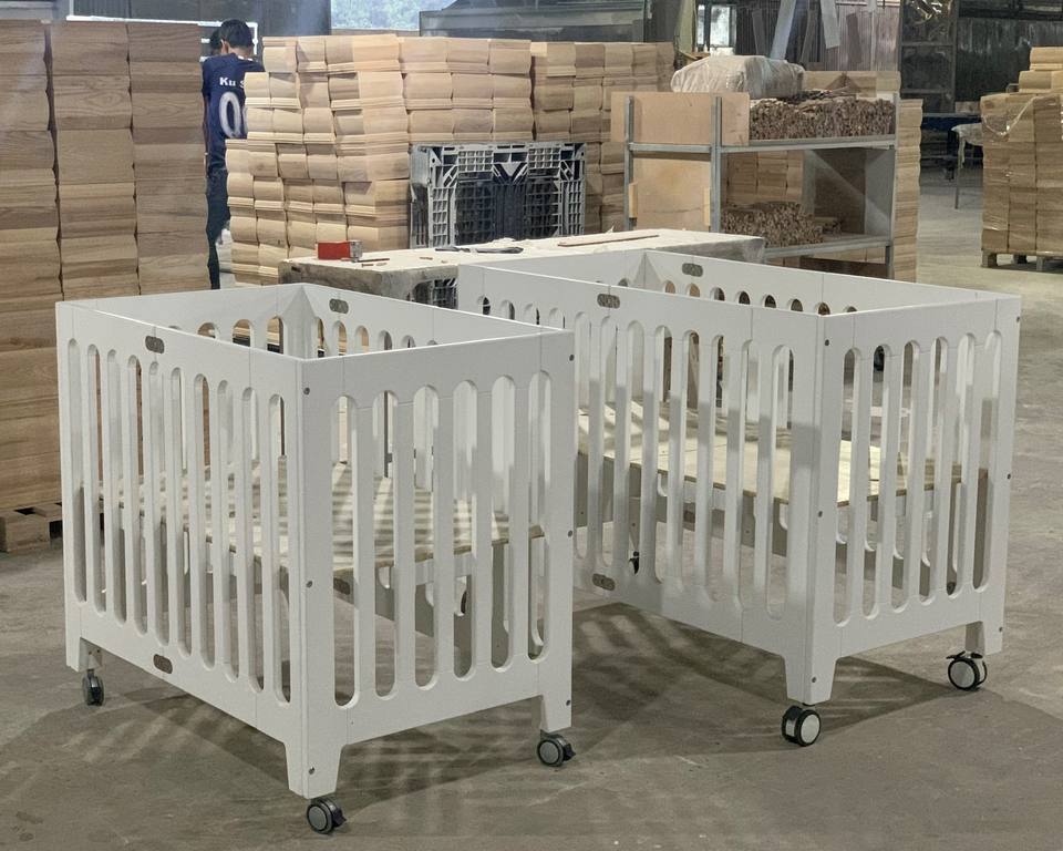 เปลไม้สีขาวสำหรับเด็ก213ถอดชิ้นส่วนเฟอร์นิเจอร์แพ็คแบนผู้ผลิตเวียดนามการตกแต่งฐานน้ำปลอดสารพิษ