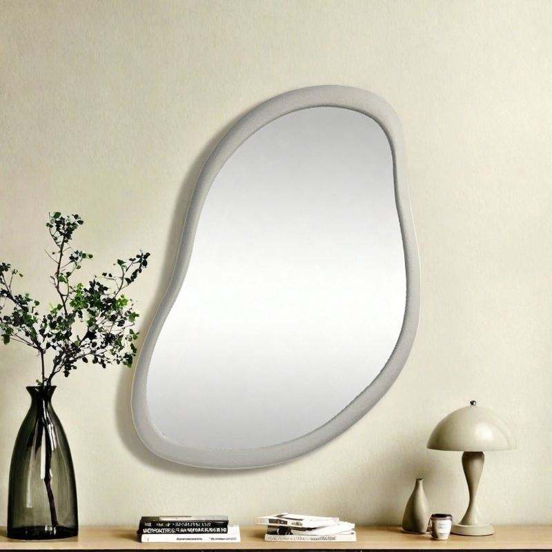 กระจกตกแต่งผนังแบบตั้งพื้นทรงไม่สมมาตร กรอบไม้สีขาว แข็งแรง ไม่แตกหัก