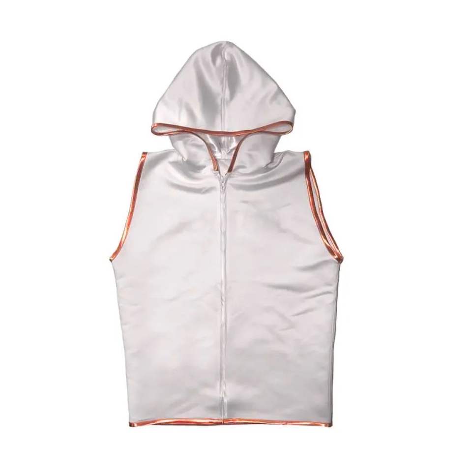 White Yellow V-Neck Boxing Walkout Vest Hooded Sleeveless Jacket Sublimated Ring Wear Fighter Gear OEM Jackets
