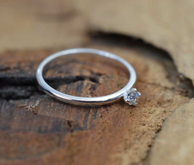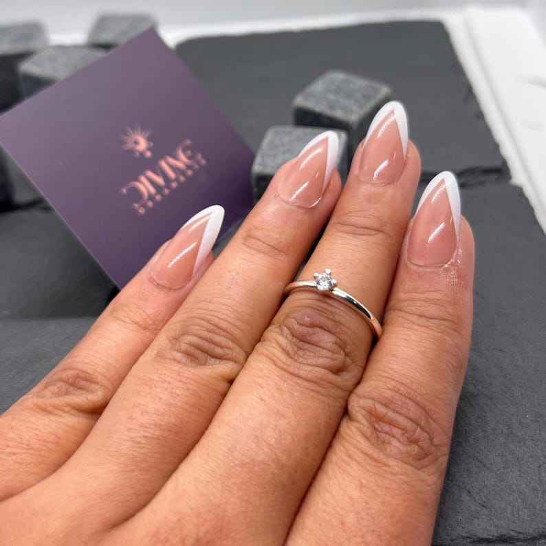 แหวนพลอยเพทายสีขาวในเครื่องประดับเงินแท้ 925 ของขวัญ