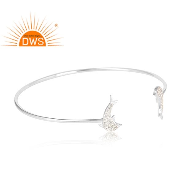 กำไลข้อมือเงินแท้ดีไซน์ปลาคู่ประดับเพชรซิคอนสีขาว ปรับขนาดได้ คอลเลคชั่นคลาสสิกจากผู้ผลิตเครื่องประดับ
