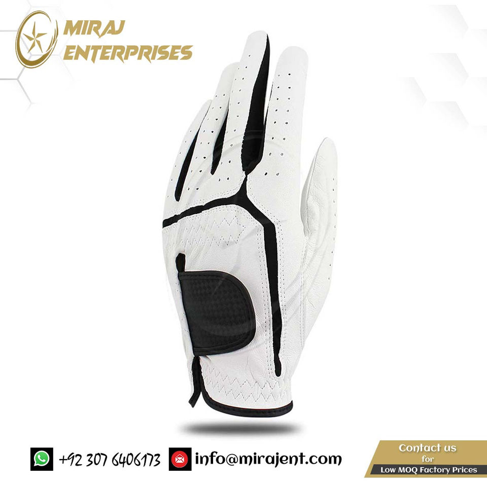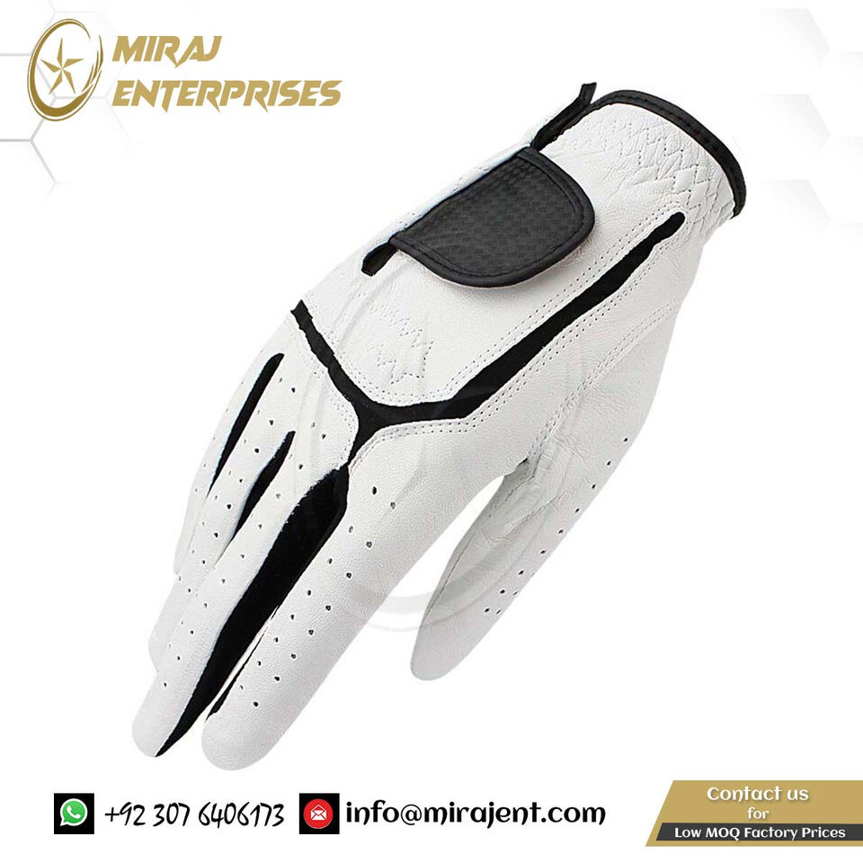 ถุงมือกอล์ฟหนังแท้สำหรับผู้ชายถุงมือหนังแท้สำหรับนักกอล์ฟของขวัญแบบมืออาชีพสีขาวและสีดำ
