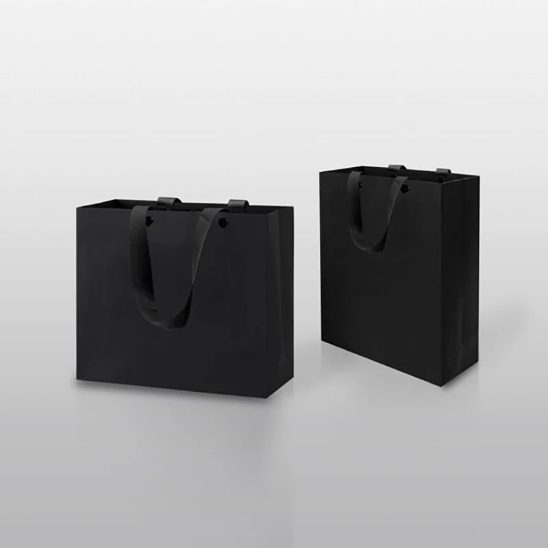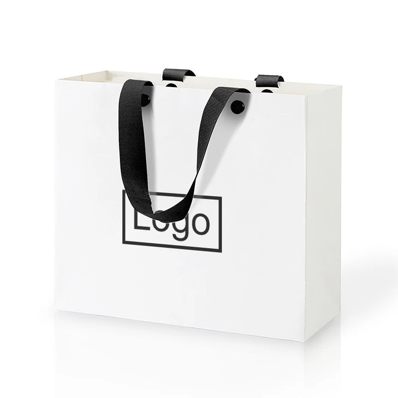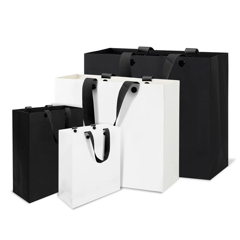 ถุงกระดาษคราฟท์สีขาวดำคลาสสิก หูหิ้วแบบบิดเกลียว เป็นมิตรกับสิ่งแวดล้อม น้ำหนักเบา สำหรับใส่สินค้าเคลือบสองด้านพร้อมโลโก้