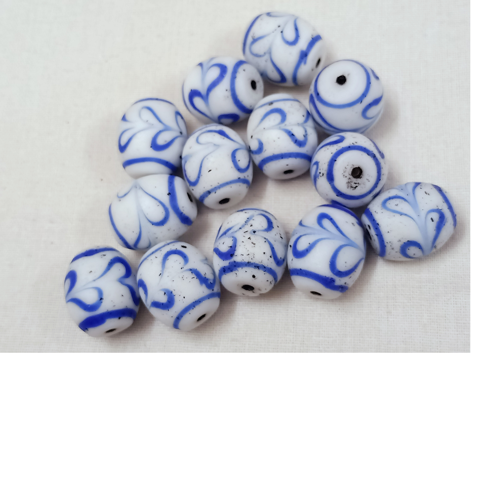 White and Blue Antique Look Spotted Glass Beads in Box-Eco-Friendly for Jewelry Designers and Bead Stores