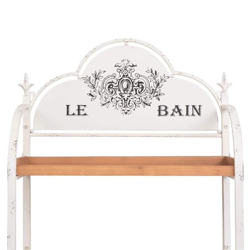ชั้นวางของเหล็กสีขาวและสีน้ำตาลพร้อมไม้เฟอร์แข็งแรงทนทานและมีสไตล์