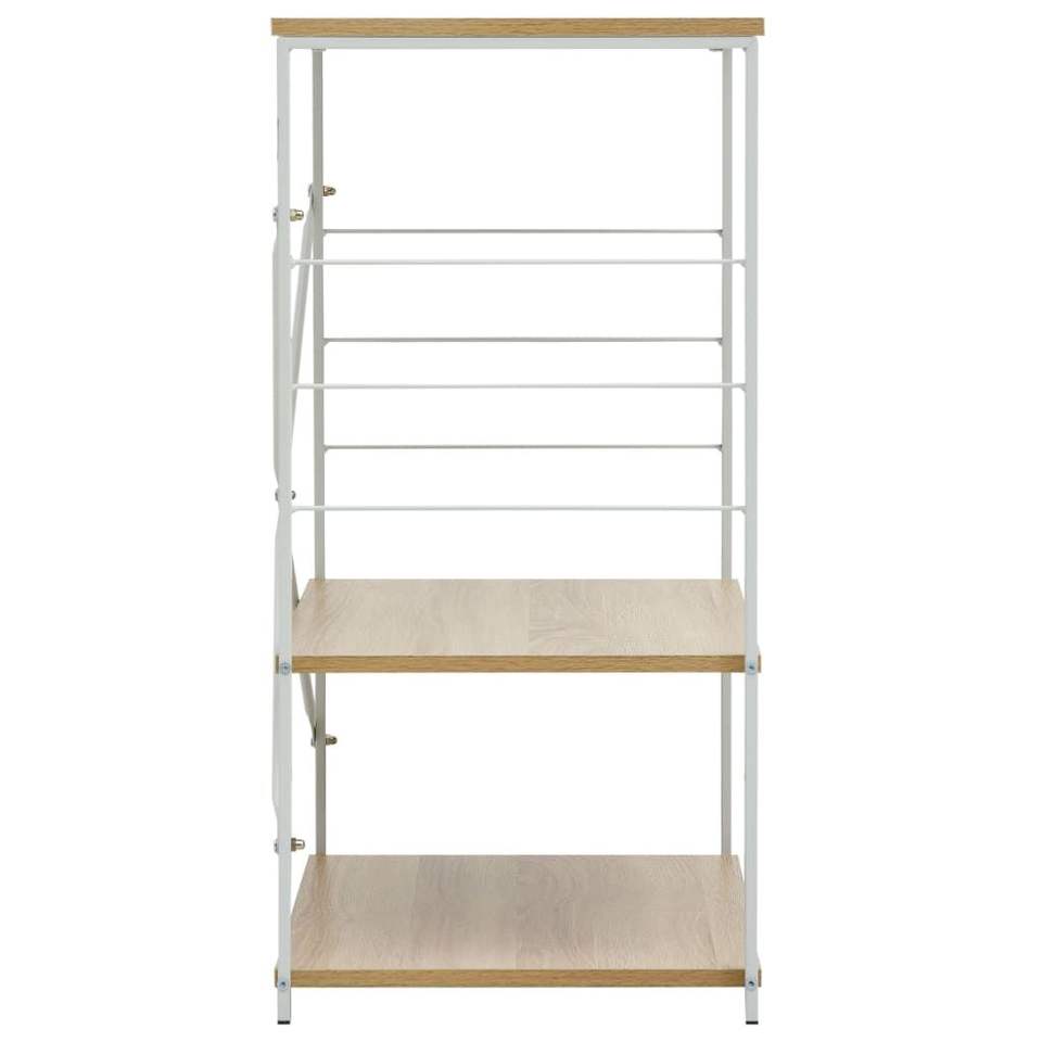 ตู้ไมโครเวฟสีขาวและสีโอ๊ค 23.6"x15.6"x31.3" ชั้นวางของไม้สังเคราะห์