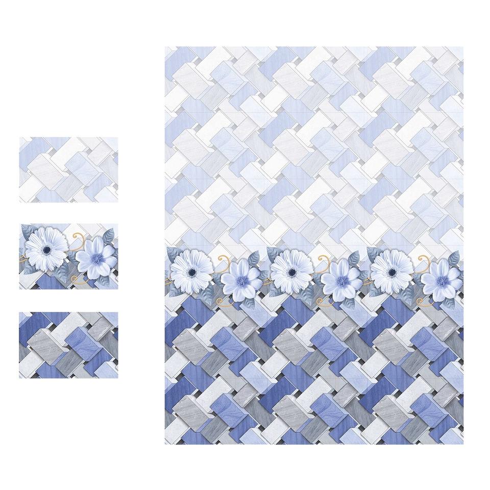 กระเบื้องผนังเซรามิกเคลือบมัน30x45cm การออกแบบบล็อก3D สีขาวและสีฟ้า