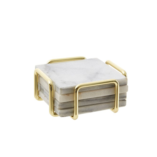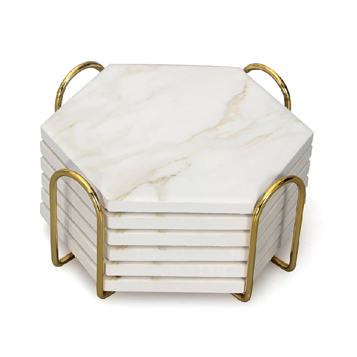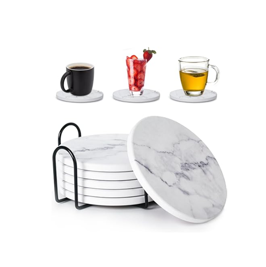 ชุดถาดรองแก้วหินอ่อนธรรมชาติทรงกลมสีขาว/ดำ/เขียวขาตั้งโลหะปรับขนาดได้