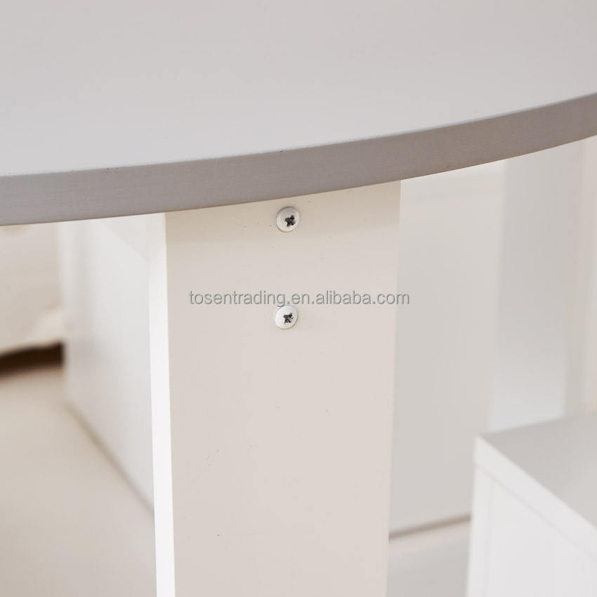 โต๊ะกิจกรรมเด็กทรงกลมสีขาวอเนกประสงค์ พร้อมเก้าอี้เก็บของ 4 ตัว ชุดโต๊ะและเก้าอี้สำหรับเด็กเล่นในห้องนอน