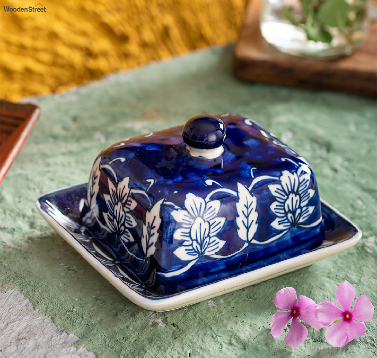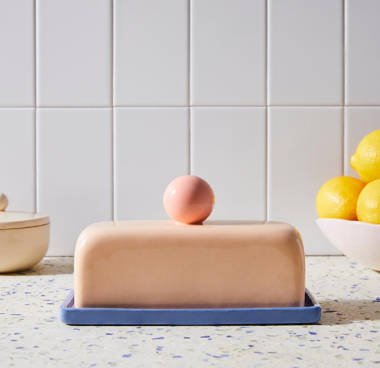 White fluted ceramic butter dish with wooden base, available at wholesale prices, ceramic butter dish