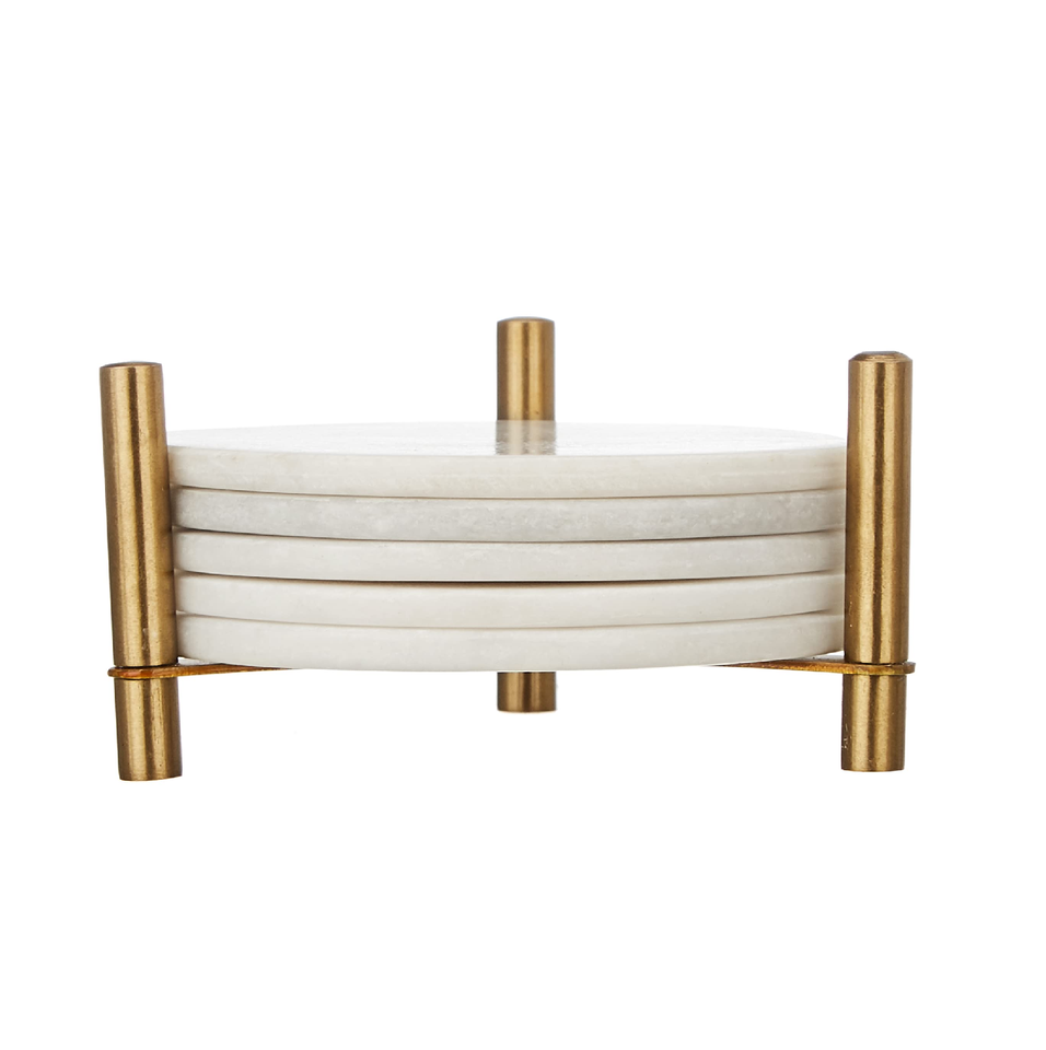 ชุดจานรองแก้วหินอ่อนสีขาวชุดที่รองแก้วพร้อมที่วางแก้วสำหรับดื่ม