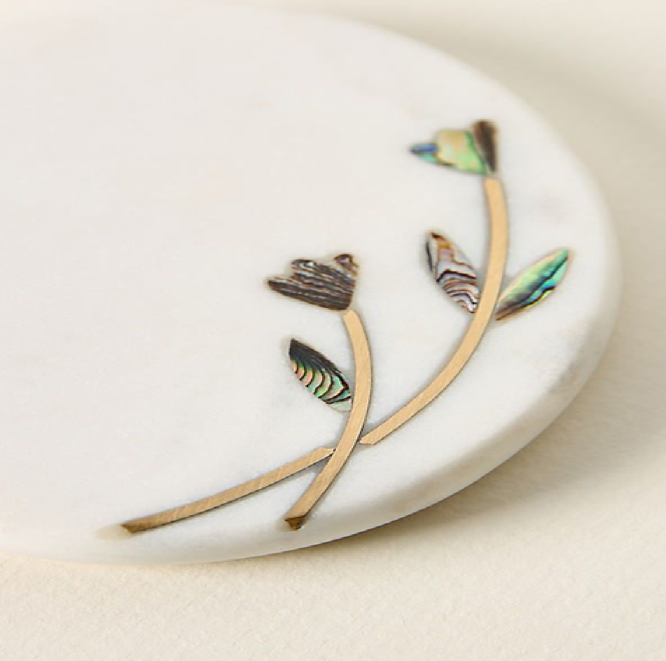 ที่รองแก้วหินอ่อนสีขาวทรงกลม ประดับลายดอกไม้ละเอียดอ่อนด้วยการฝังเปลือกหอย เพื่อความสง่างามเหนือกาลเวลา มีจำหน่ายในราคาขายส่ง ช้อปเลยตอนนี้.