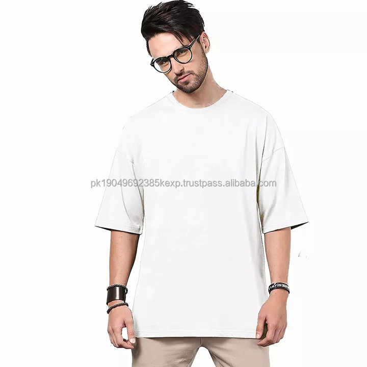 เสื้อยืดโอเวอร์ไซส์สีขาวทรงหลวมสำหรับผู้ชายและผู้หญิง ยูนิเซ็กส์ ผ้าฝ้ายเรียบง่าย สวมใส่สบาย ขายส่ง