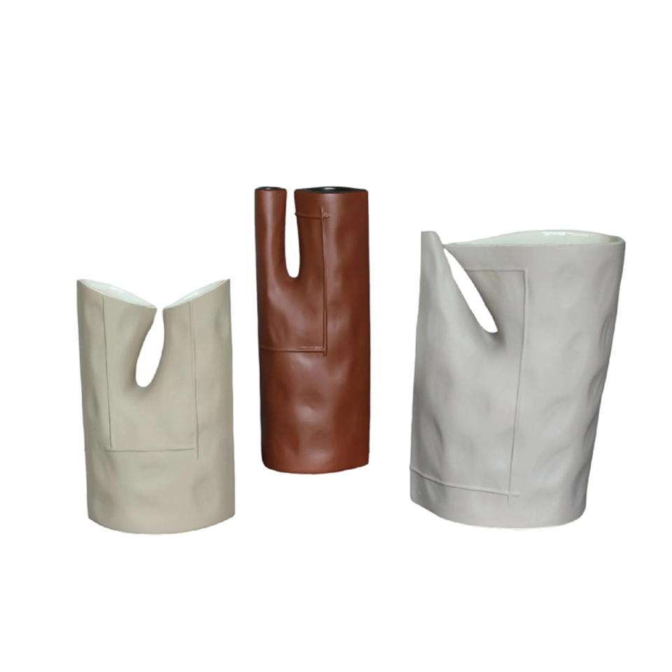 แจกันด้ามจับสองด้านสีขาวทรงกลมสำหรับตกแต่งอย่างหรูหราพร้อมจอแสดงผลยาวเหมาะสำหรับงานแต่งงานและจัดแต่งทรงผมที่บ้าน