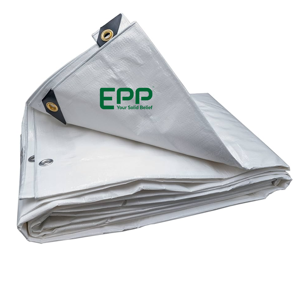 ผ้าใบกันน้ำสีขาวมอบการป้องกันรังสียูวีกันน้ำสำหรับรถยนต์ตั้งแคมป์สวนเรือลานและอเนกประสงค์ครอบคลุมกลางแจ้ง