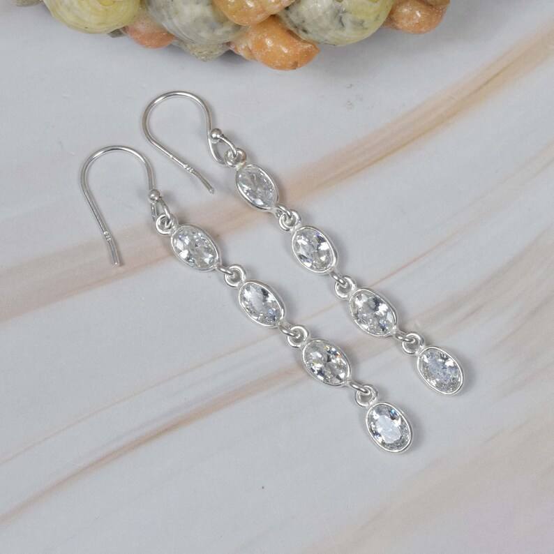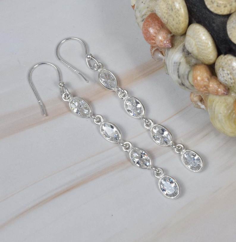 ทำด้วยมือ925เงินสเตอร์ลิงต่างหูพลอยสีขาวบุษราคัมพร้อมชุบทองของขวัญงานแต่งงานหรืองานเลี้ยงสำหรับเธอ