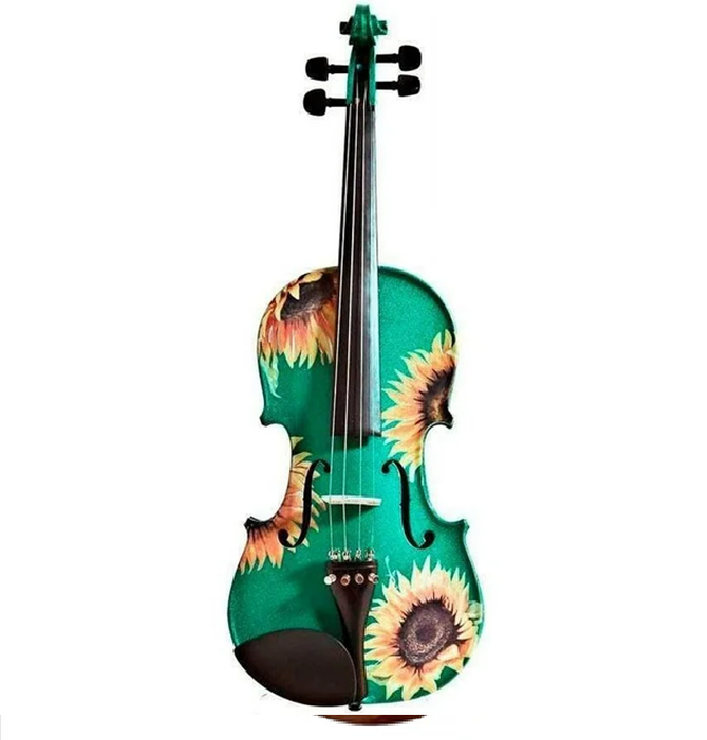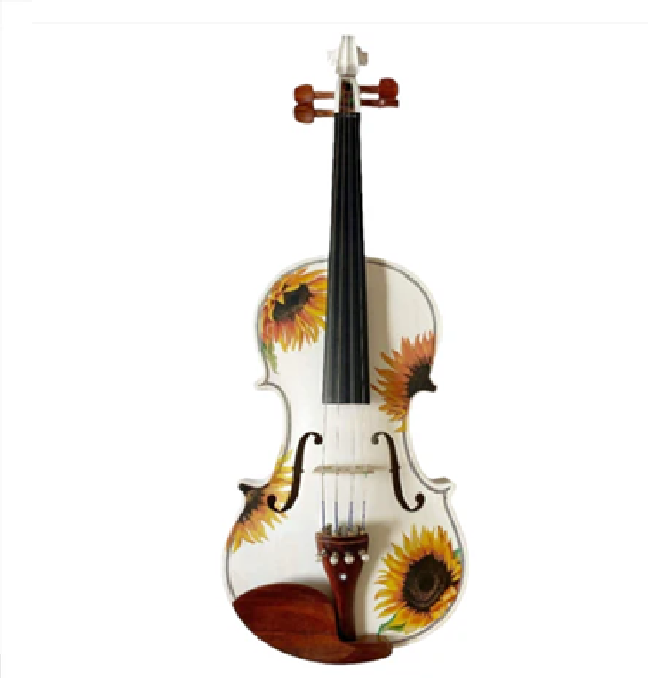ไวโอลินสีขาวพร้อมศิลปะดอกทานตะวันการออกแบบลายดอกไม้ที่สดใสและร่าเริงความสวยงามที่เป็นเอกลักษณ์สำหรับนักดนตรีนักเรียนในราคาขายส่ง