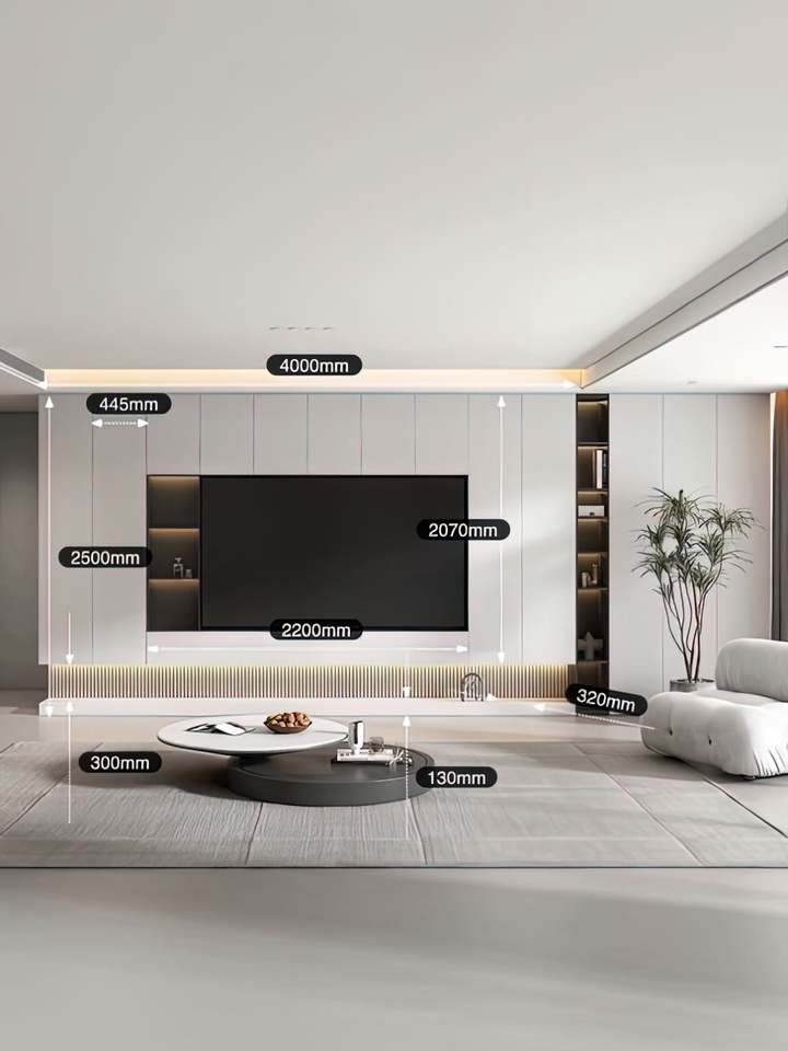 ตู้วางทีวีติดผนังแบบปรับแต่งได้ทั้งหลัง พร้อมช่องเก็บของ ดีไซน์ตู้วางทีวีติดผนัง พร้อมเตาผิงอัจฉริยะ เฟอร์นิเจอร์บ้าน ห้องนั่งเล่น