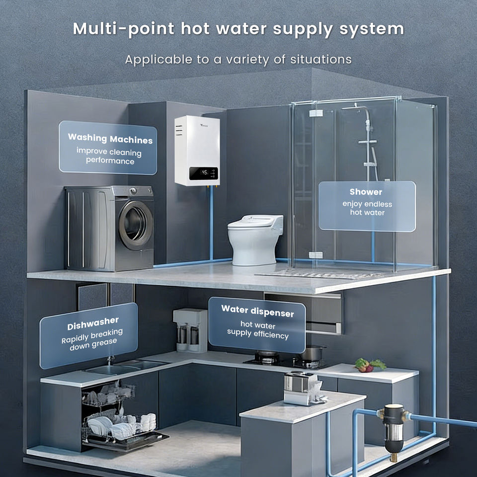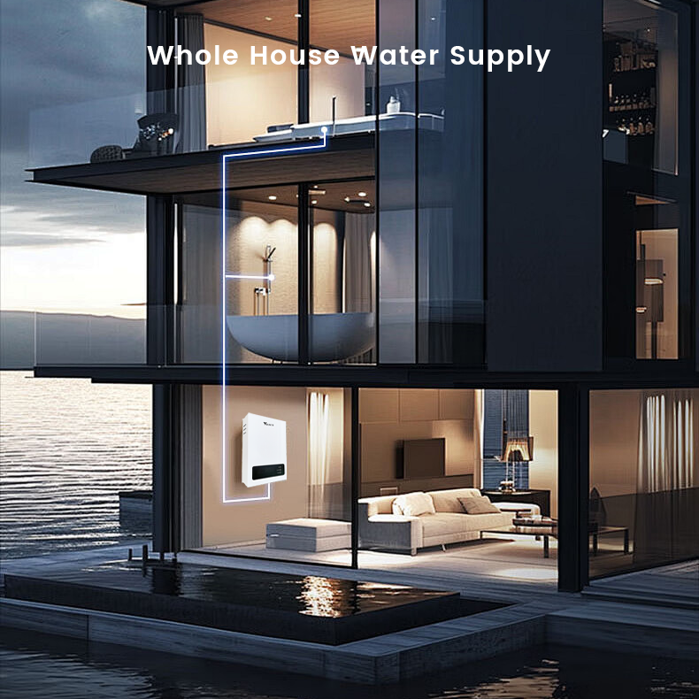 เครื่องทำน้ำอุ่นไฟฟ้าแบบไร้ถัง 240V 12KW-18KW สำหรับบ้านทั้งหลัง ระบบอัจฉริยะ ให้ความร้อนเร็ว สำหรับห้องน้ำ