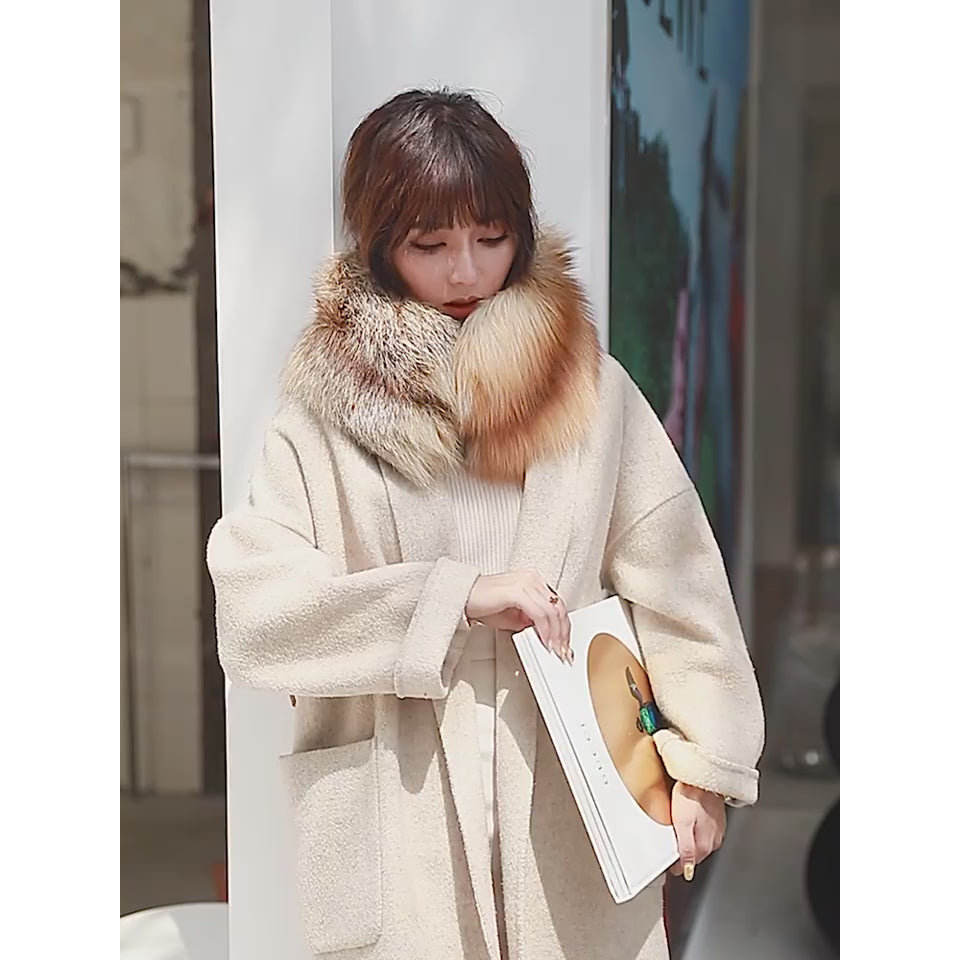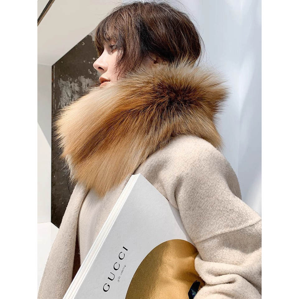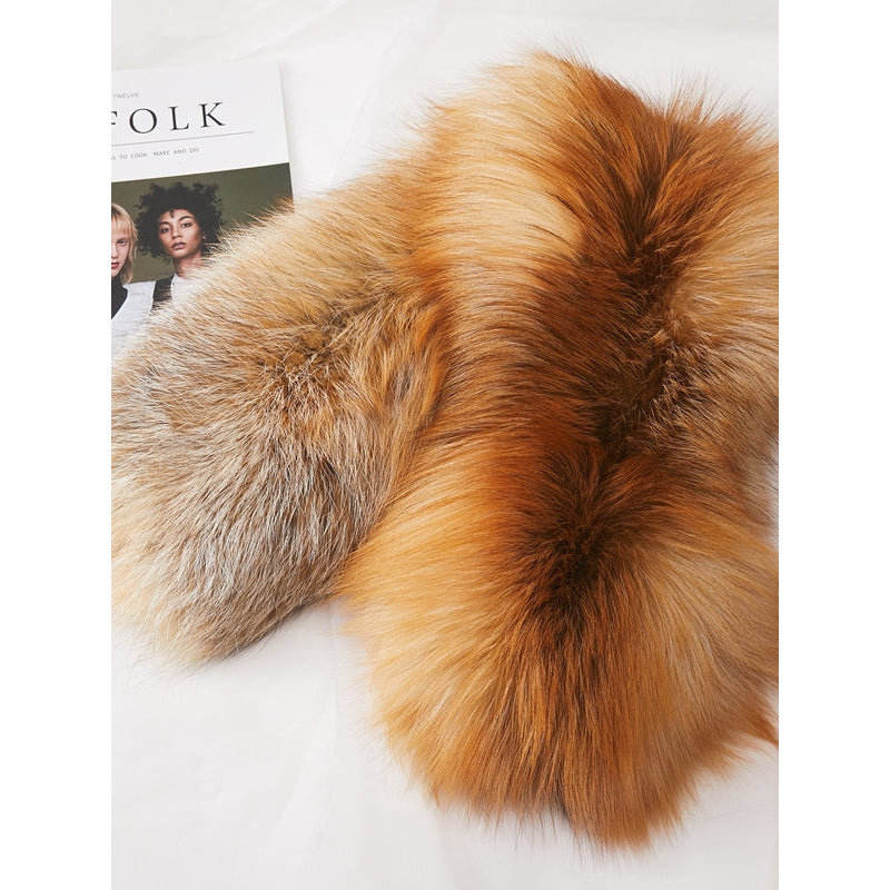 ผ้าพันคอขนสุนัขจิ้งจอกสีแดงทั้งผืนพร้อมหัวเข็มขัดแม่เหล็กทรงสี่เหลี่ยม