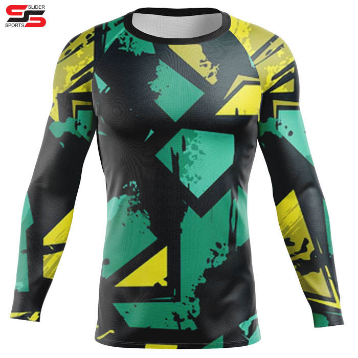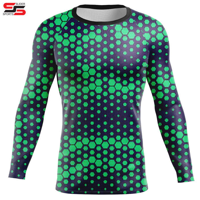 เสื้อแรชการ์ดแบบบีบอัดสำหรับผู้ชายเสื้อแรชการ์ดแขนยาวแบบซับลิเมตสำหรับทุกเพศโลโก้ของคุณเอง