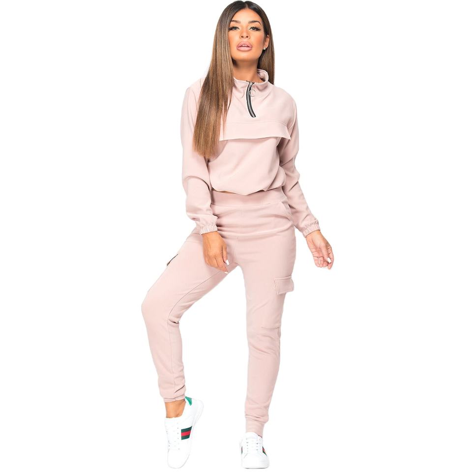 ชุดกีฬาสองชิ้นสำหรับผู้หญิงชุดออกกำลังกายเสื้อฮู้ดมีซิป