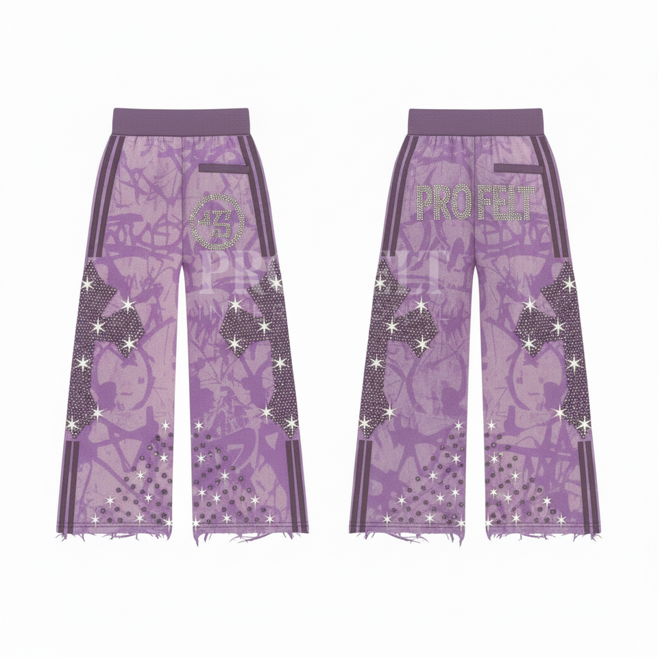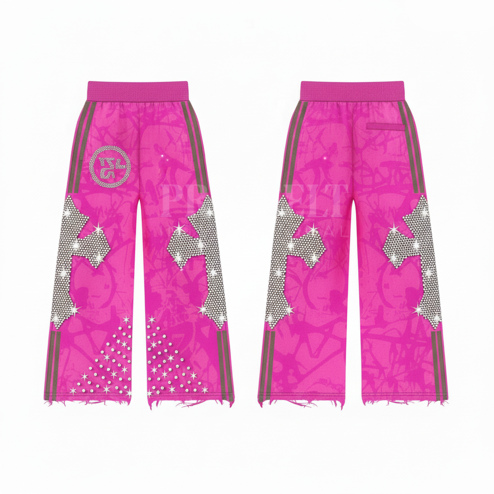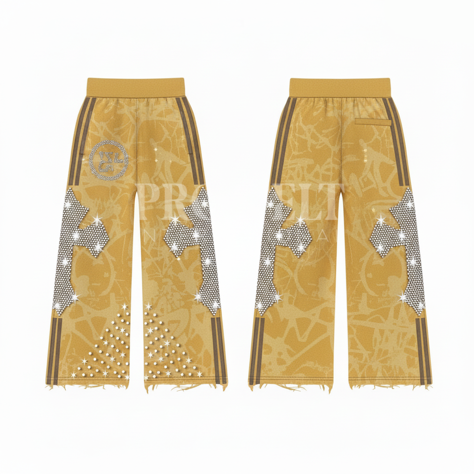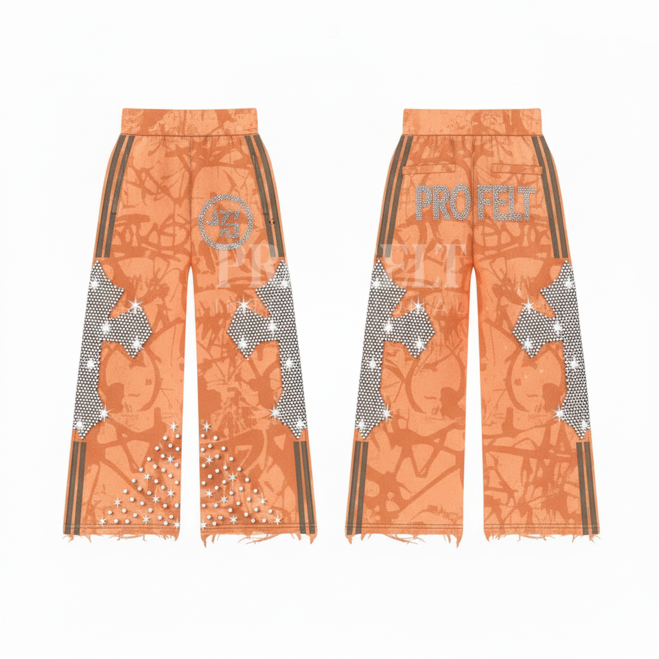 กางเกงขายส่งทรงหลวมขาบานผ้าแคนวาส แต่งลายดาวประดับเพชรเทียม เอวกลาง ทรงหลวม สไตล์แฟชั่นสตรีทแวร์