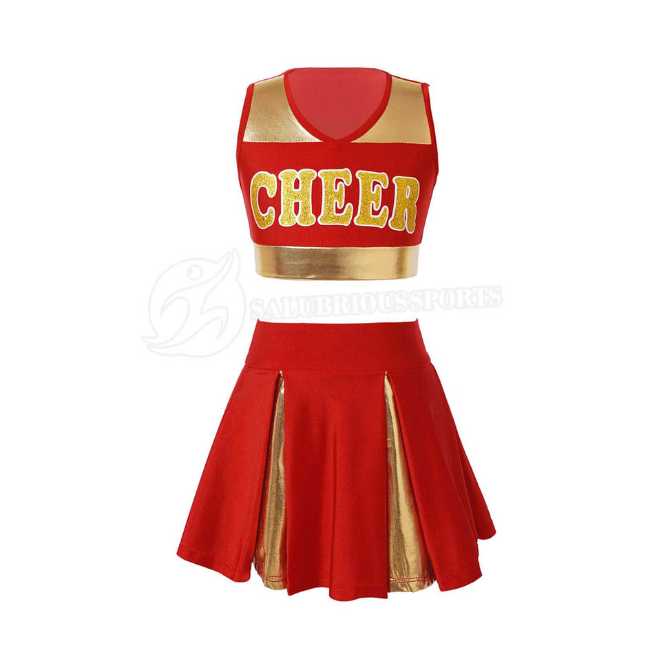 ชุดยูนิฟอร์มเชียร์ลีดเดอร์สำหรับผู้หญิง พิมพ์ลายแบบซับลิเมชั่นทั้งตัว เนื้อผ้าโพลีเอสเตอร์ 100% สวมใส่สบาย เหมาะสำหรับกีฬา ขายส่ง