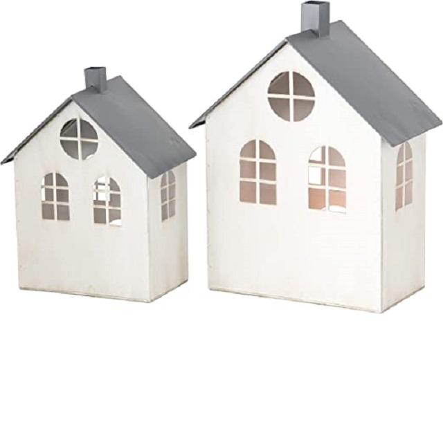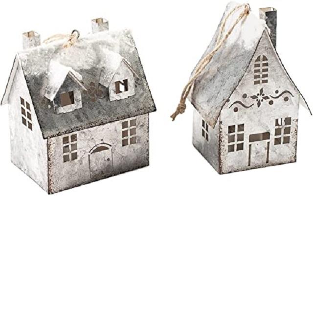 ขายทั้งชุดของ3สีชมพูถนนทาวน์เฮ้าส์จอแสดงผลโลหะชุบสังกะสีบ้านไร่ตกแต่งบ้านสำหรับเครื่องประดับคริสต์มาส