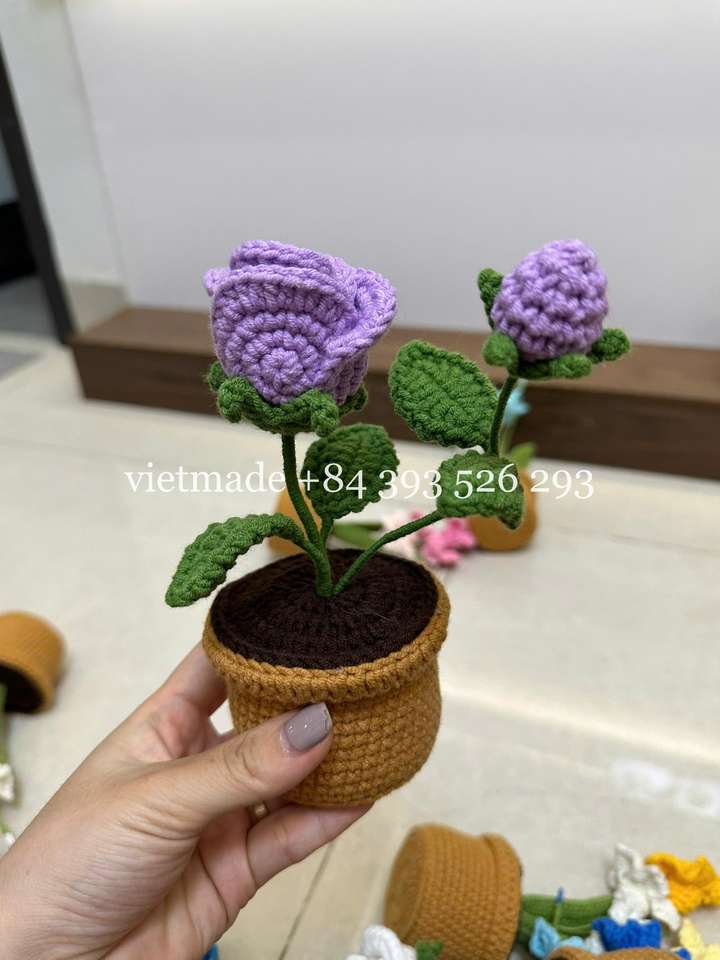 ชื่อผลิตภัณฑ์:กระถางดอกไม้กุหลาบโครเชต์งานแฮนด์เมด