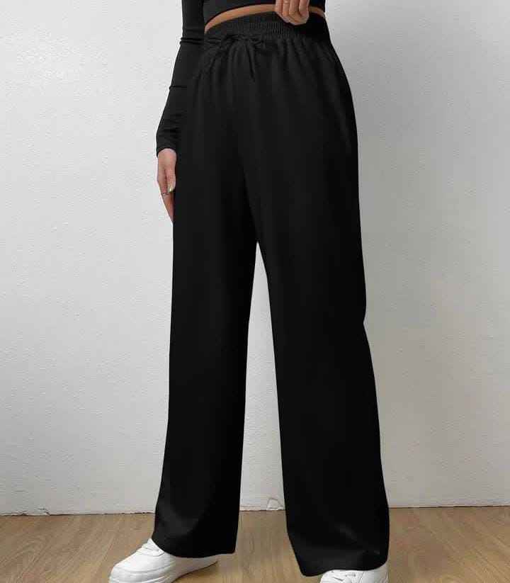 กางเกงผู้หญิงเอวสูงขากว้างกางเกงลำลองระบายอากาศ