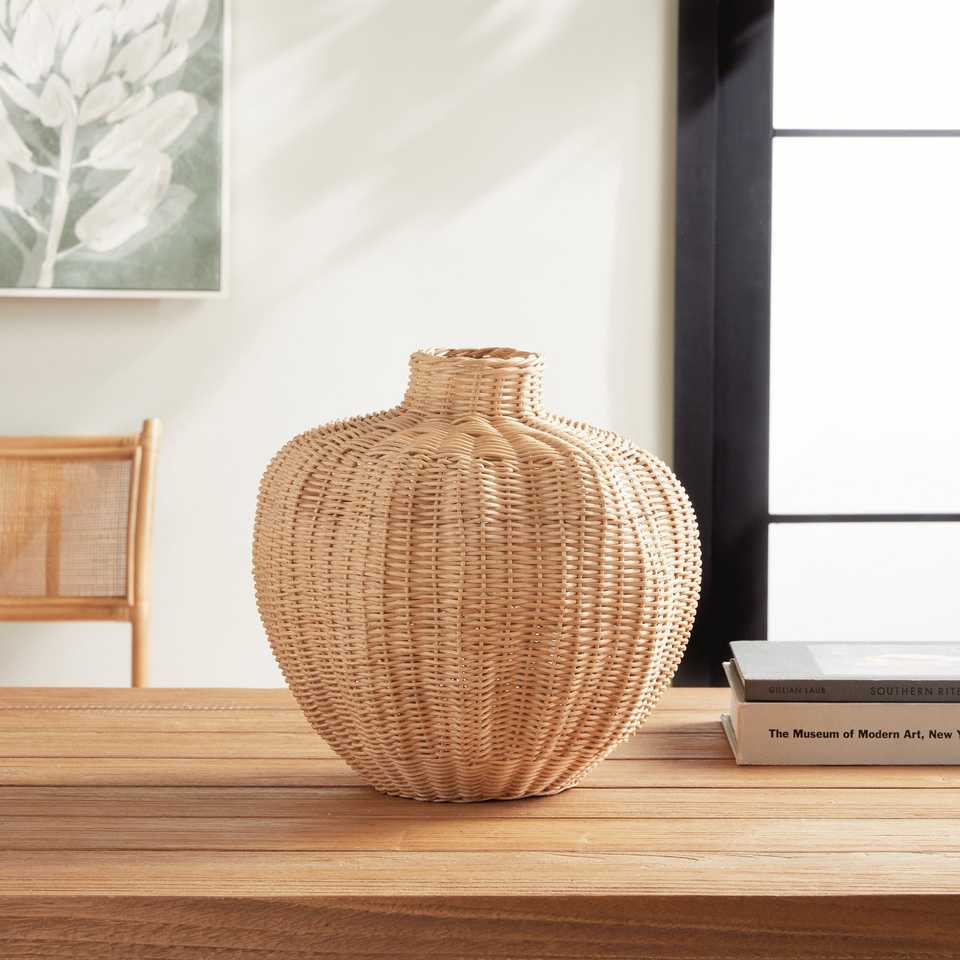แจกันหวายสานหวายปักดอกไม้หวายธรรมชาติของตกแต่งบ้านแจกันตะกร้าสไตล์โบโฮ