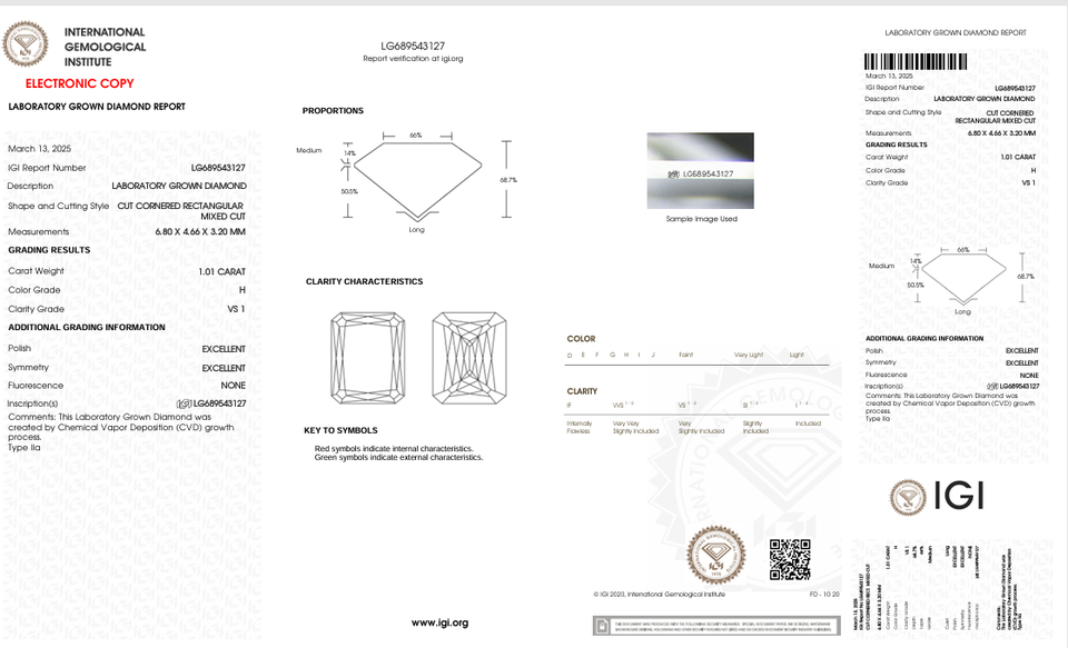 เพชรส่องแสง VS1 1.01 CT ความคมชัดของ H CVD ห้องปฏิบัติการที่ปลูกได้รับการรับรองว่าเป็นเพชรที่ยอดเยี่ยมสำหรับการทำเครื่องประดับ