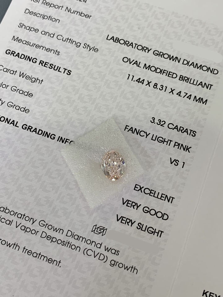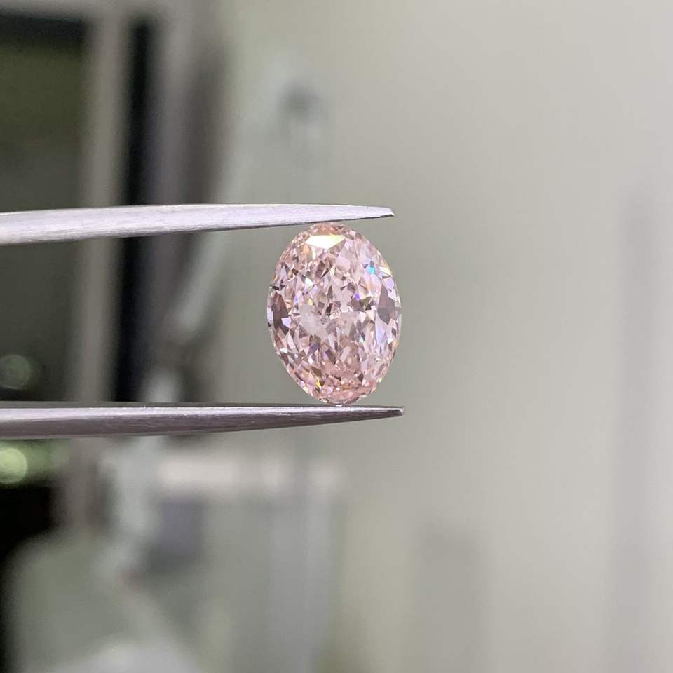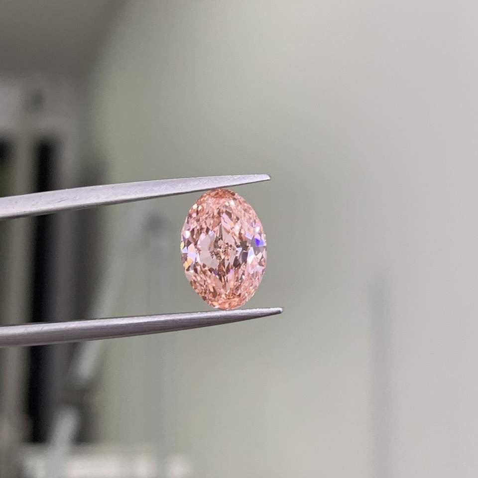 เพชรทรงรี 1.05 กะรัต ขายส่ง ได้รับการรับรองจาก IGI ความสะอาดระดับ VVS เพชรเม็ดเดี่ยวสำหรับทำเครื่องประดับ เพชรแฟนซีสีชมพู CVD ผลิตในห้องปฏิบัติการ