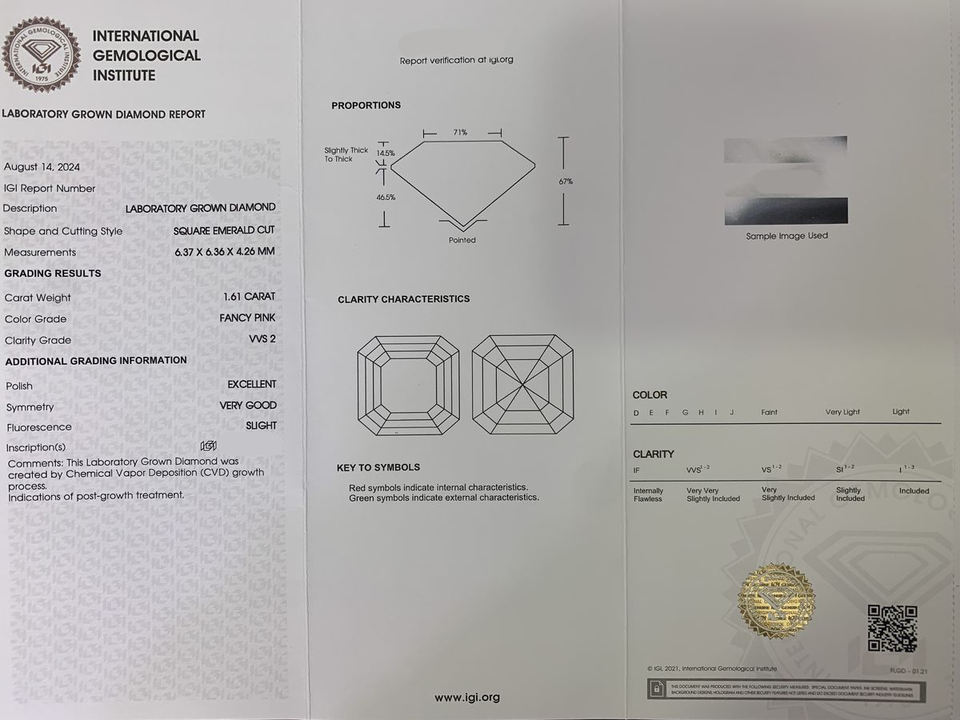 เพชรแล็บสร้างขึ้นทรง Asscher ขนาด 1-10 กะรัต ขายส่ง พร้อมใบรับรอง IGI และ GIA ความใส VVS สีชมพู CVD สำหรับทำเครื่องประดับ
