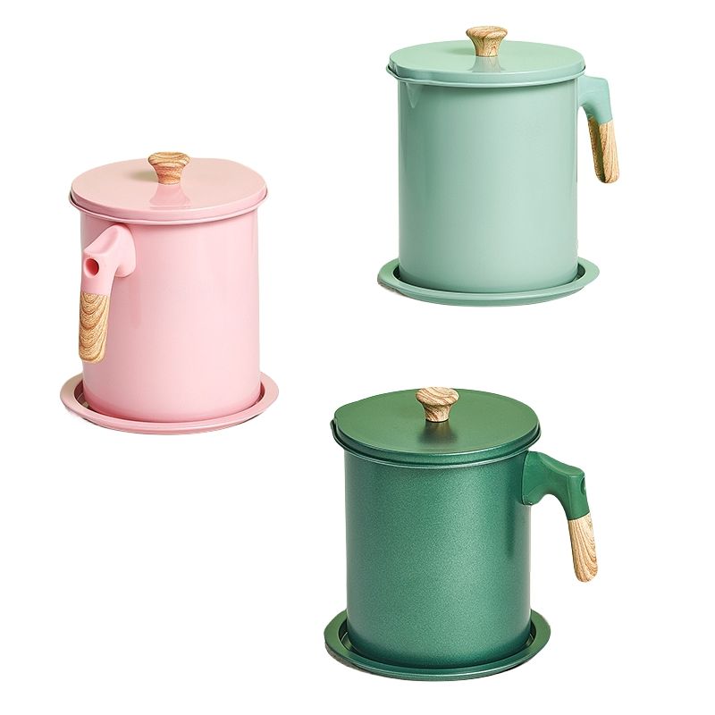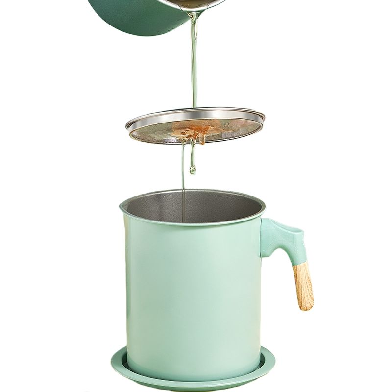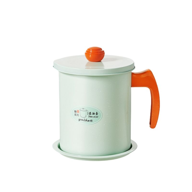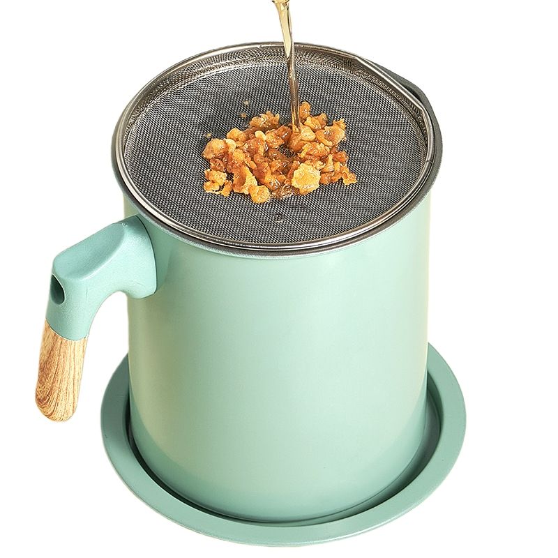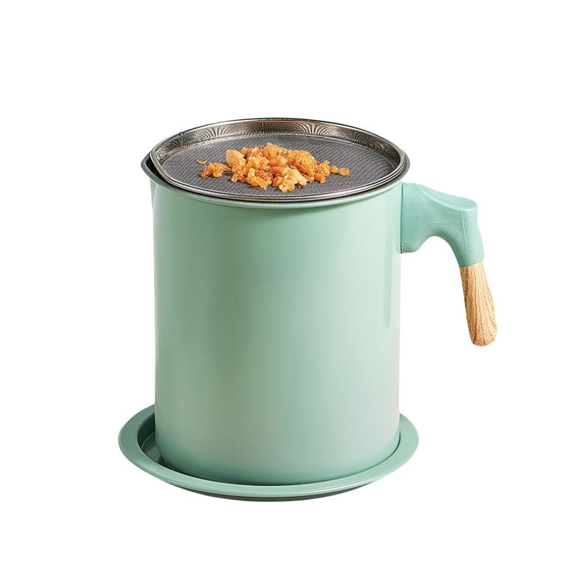 ที่กรองน้ำมัน1.7L 1.4L หม้อภาชนะเก็บน้ำมันภาชนะใส่น้ำมันทำอาหารแบบเหล็กภาชนะใส่จาระบีเบคอนพร้อมตะแกรงละเอียด