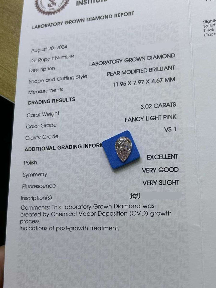เพชรทรงลูกแพร์ 1.7 กะรัต ขายส่ง ได้รับการรับรองจาก IGI ความสะอาดระดับ VVS เพชรเม็ดเดี่ยวสำหรับทำเครื่องประดับ เพชรแฟนซีสีชมพู CVD ผลิตในห้องปฏิบัติการ