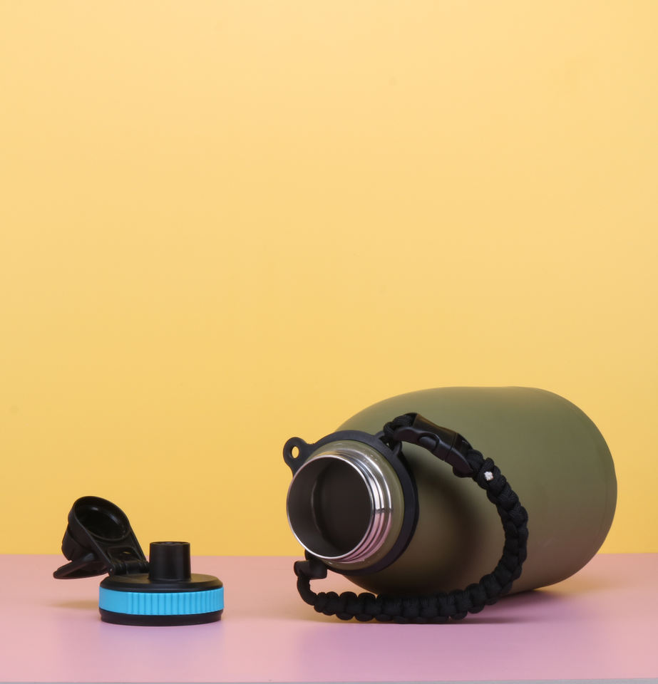 ขวดน้ำกีฬาสแตนเลสสุญญากาศสองชั้นขนาด 1.8 ลิตร สำหรับกิจกรรมกลางแจ้ง พร้อมปลอกหุ้มขวดน้ำฟรี รับผลิตแบบ OEM ขายส่ง