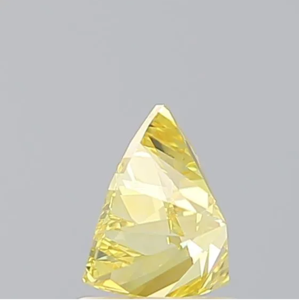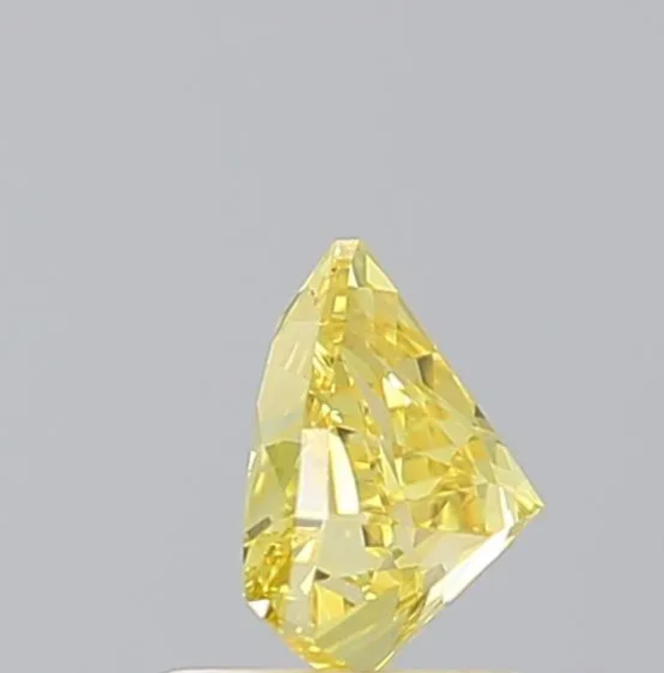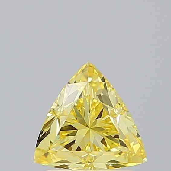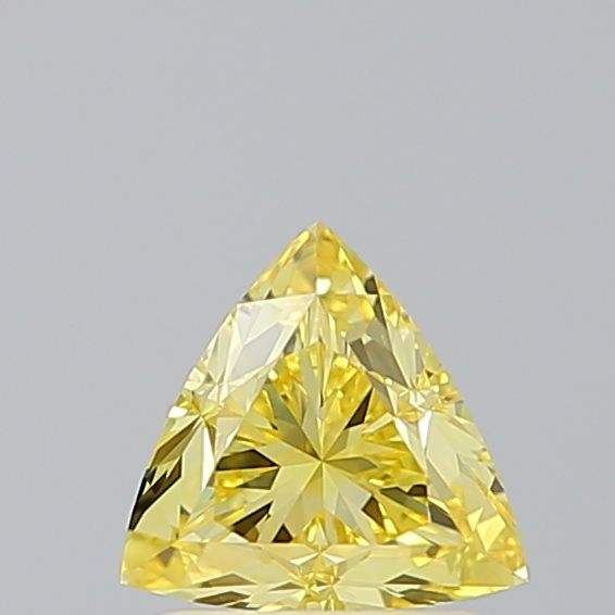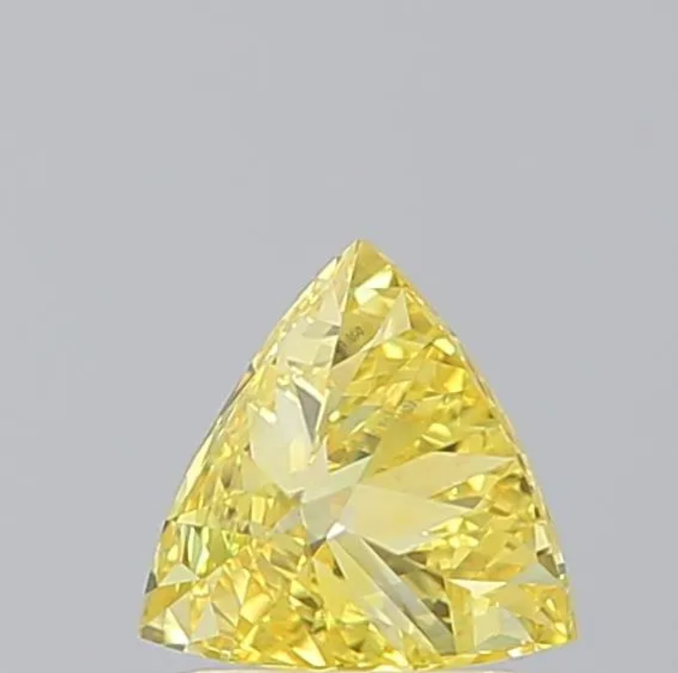 พลอยสังเคราะห์สีเหลืองเพชรสำหรับปลูกในห้องปฏิบัติการขนาด1กะรัตได้รับการรับรองจากการตัดทรงสามเหลี่ยมอัญมณีหลวมที่ตัดได้อย่างดีเยี่ยม