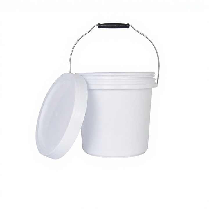 ถังสีทรงกระบอกพลาสติก PP ขนาด 1 แกลลอน เป็นมิตรกับสิ่งแวดล้อม พร้อมหูจับโลหะ สีขาว ตัวเลือกโลโก้ตามสั่ง สำหรับเก็บสี ขายส่ง