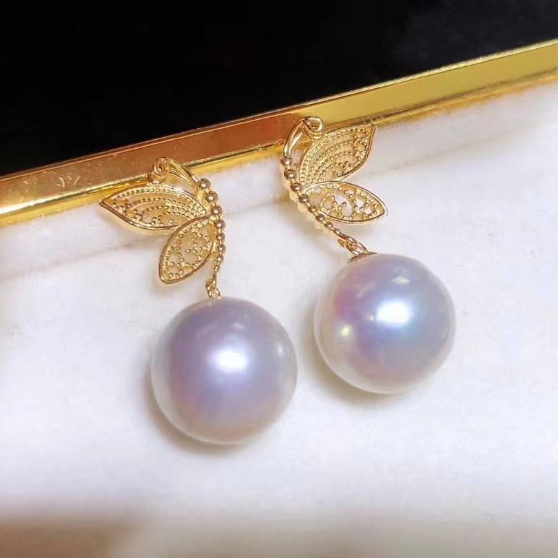 ต่างหูมุกน้ำจืดทรงเกือบกลม 10-11 มม. ขายส่ง สำหรับทำเครื่องประดับ DIY ยอดนิยม มีตำหนิเล็กน้อย