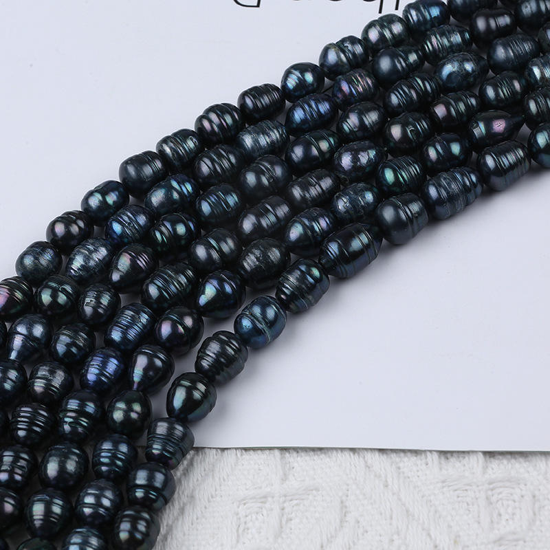 ไข่มุกน้ำจืดธรรมชาติทรงข้าวสารสีดำ ขนาด 10-11 มม. ขายส่ง สำหรับทำเครื่องประดับ DIY