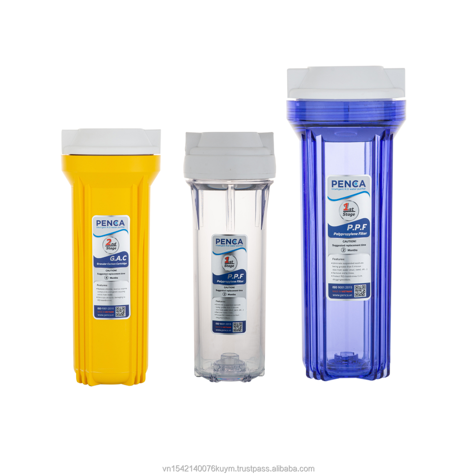 ระบบกรองน้ำสีฟ้าขนาดใหญ่10-20นิ้วใส PP พลาสติก RO สำหรับใช้ในครัวเรือน