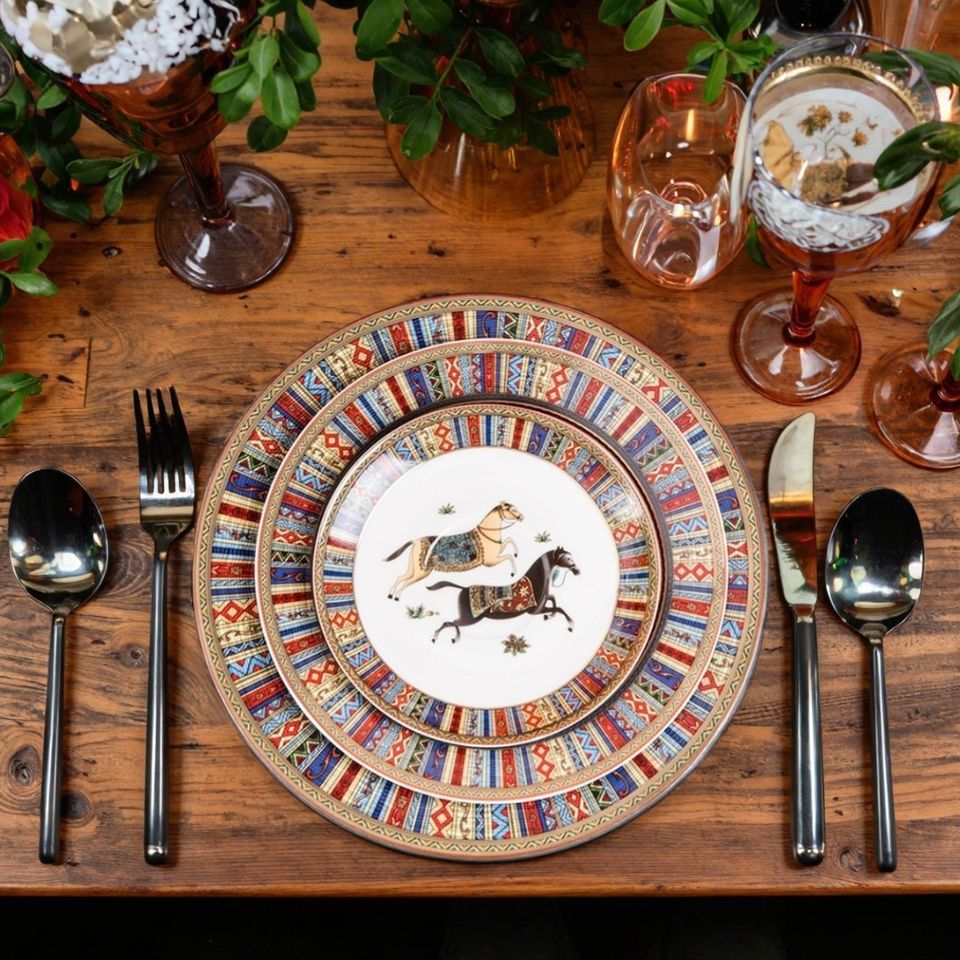 ชุดอาหารค่ำลายกระดูกจีน10นิ้วจานพอร์ซเลนสำหรับบ้านสุดหรูดีไซน์รูปม้า