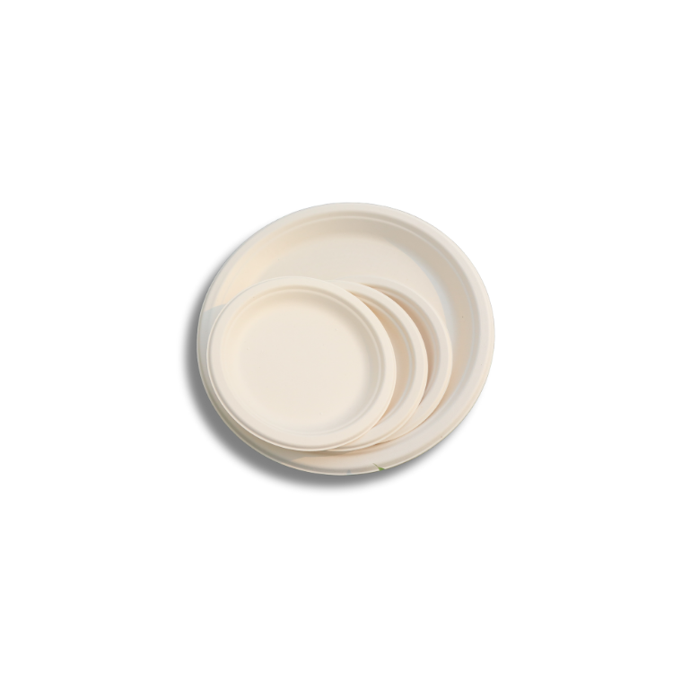 จาน100% แบบใช้แล้วทิ้งย่อยสลายได้ทางชีวภาพแผ่นขนาด6นิ้วสีขาวน้ำตาลธรรมชาติเป็นมิตรกับสิ่งแวดล้อม