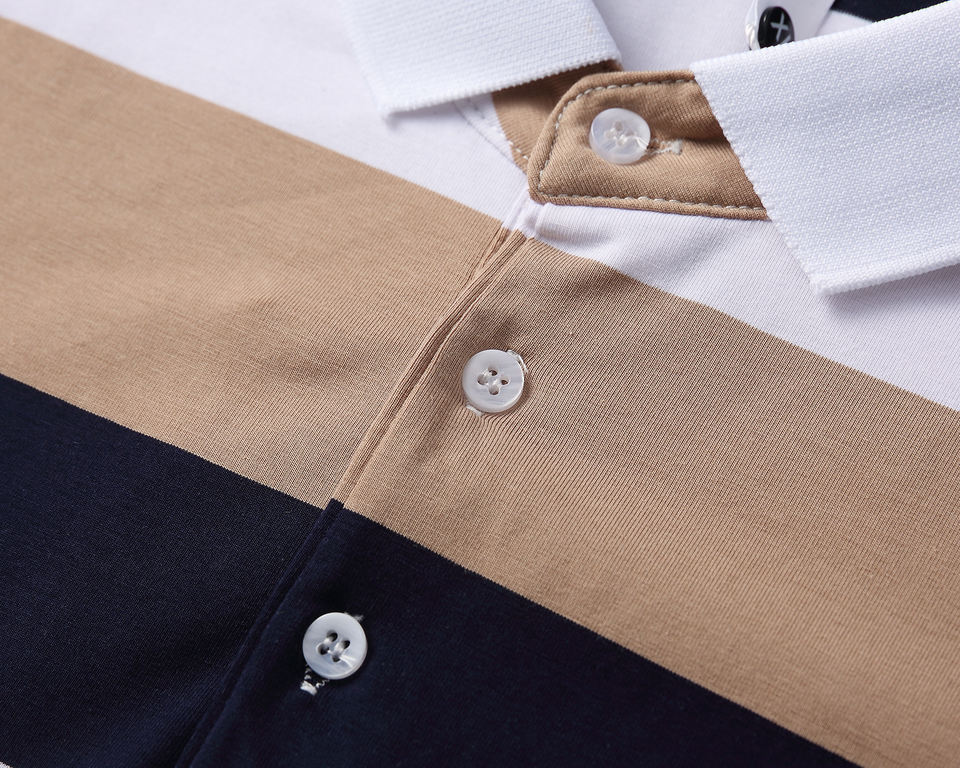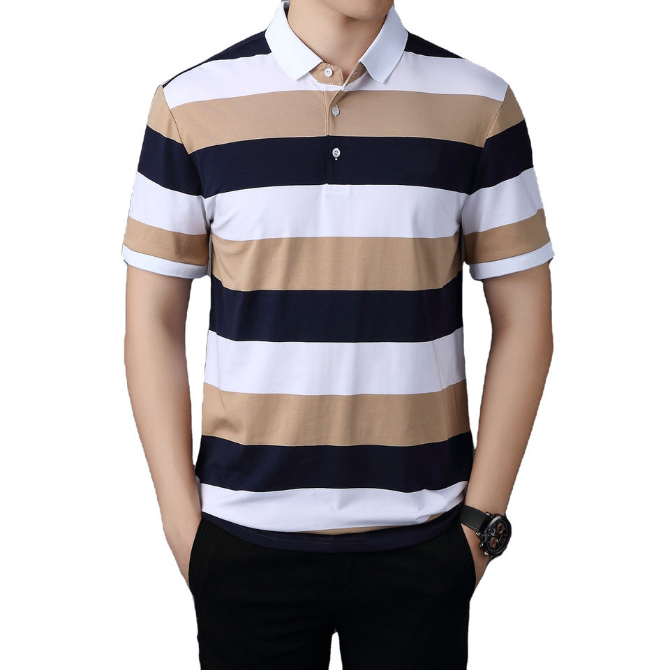 เสื้อโปโลผ้าฝ้ายหวี 100% สำหรับผู้ชาย ขายส่ง รับทำโลโก้ คุณภาพสูง คอลเลคชั่นดีไซเนอร์ ปกเสื้อลายทาง ผ้าถักนุ่ม