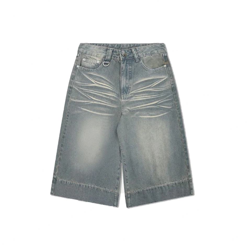 กางเกงยีนส์ขาสั้นผ้าฝ้ายแท้ 100% น้ำหนัก 14 ออนซ์ สไตล์วินเทจฟอกสีทรงยาว แฟชั่นสตรีทแวร์ กางเกงยีนส์ขาสั้นทรงหลวมสำหรับผู้ชาย ขายส่ง