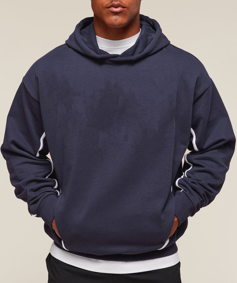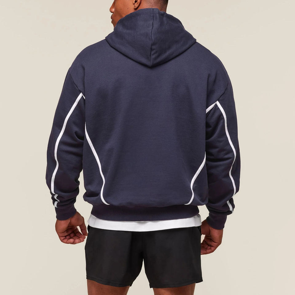 เสื้อฮู้ดผ้าฝ้าย100% 400 GSM รุ่นใหญ่โอเวอร์ไซส์สำหรับผู้ชายมีแถบสีขาวปักโลโก้ได้ตามต้องการ