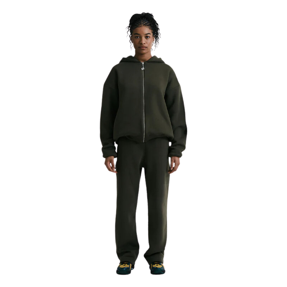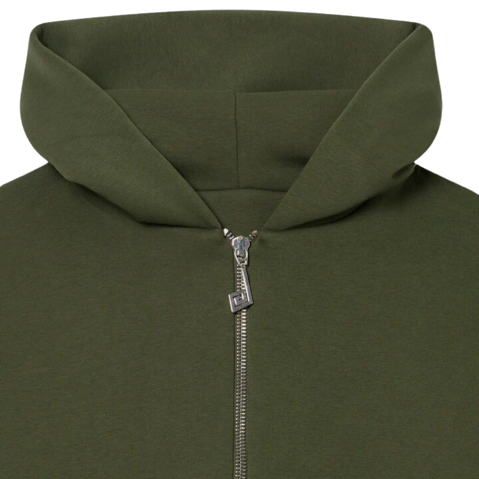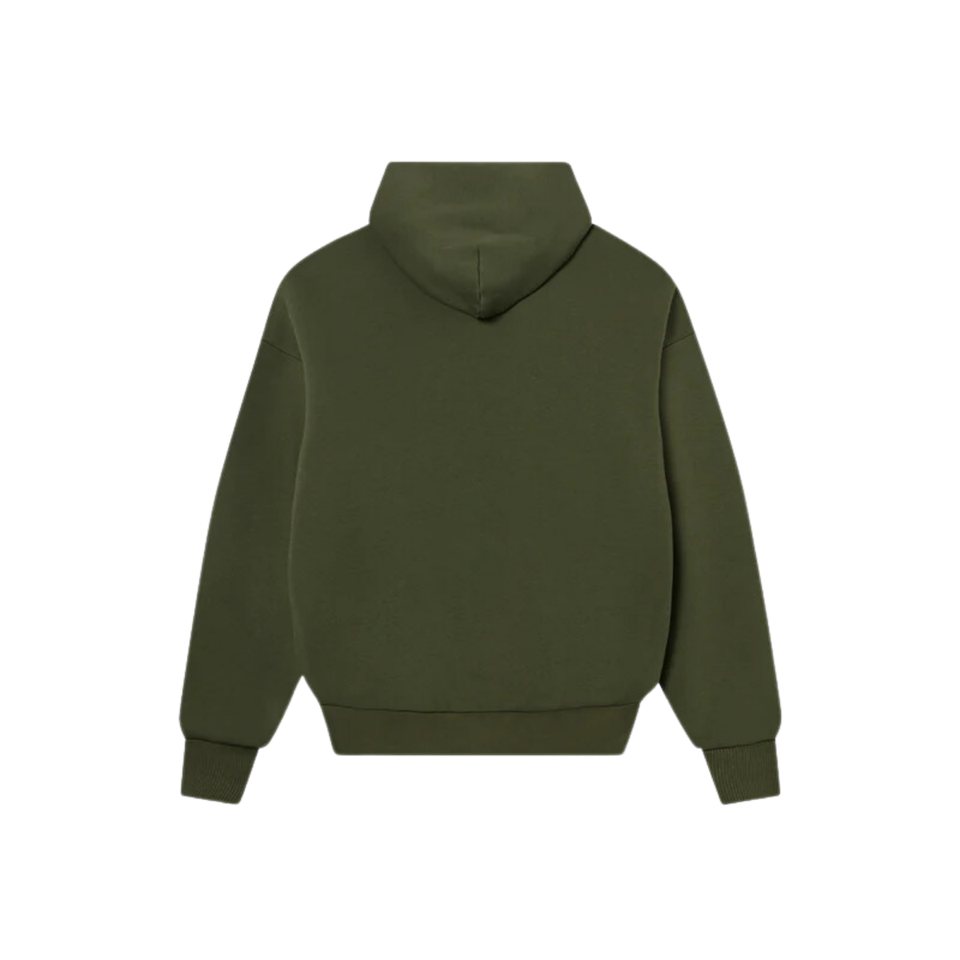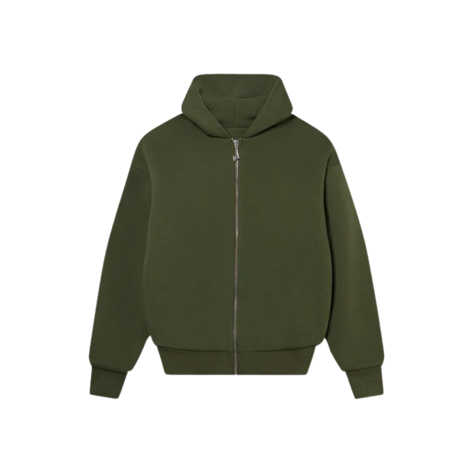 เสื้อมีฮู้ดซิปสองชั้นผ้าฝ้าย100% โอเวอร์ไซส์สีเขียวมะกอกออกแบบได้ตามที่ต้องการสำหรับฤดูหนาว